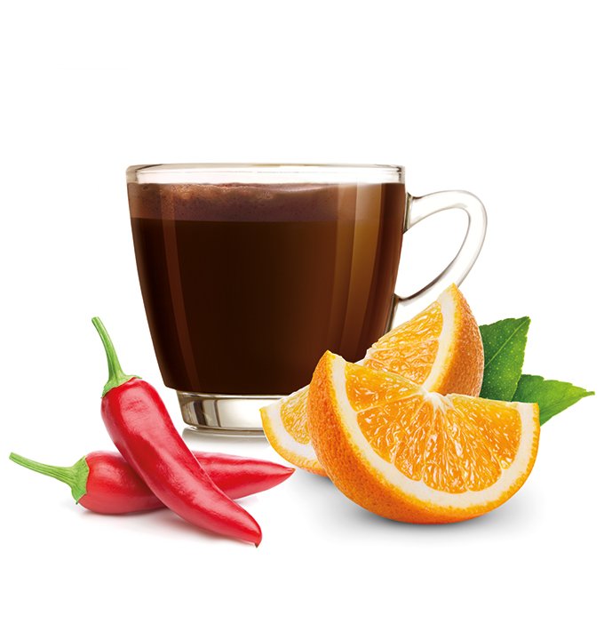 Bevanda solubile al gusto di cioccolato aromatizzato. Un fantastico incontro tra arancia e cioccolato accompagnato dalle frizzanti note del peperoncino. Golosa e intrigante.